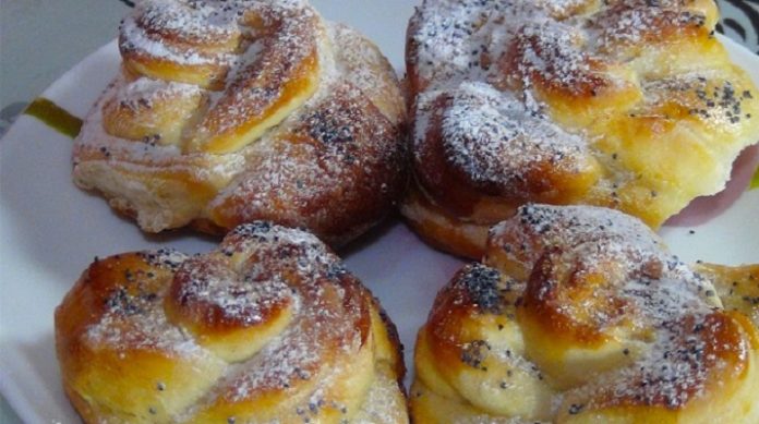 - Духовка разогрета до 220 градусов, ставим в нее булочки и выпекаем в среднем 27 минут. Но, как всегда, смотрите по своей духовке.