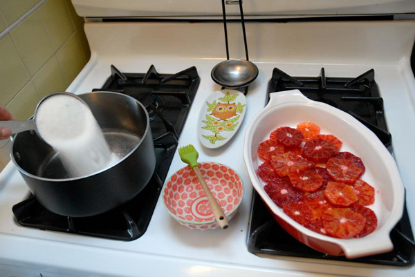 В данном рецепте я использовала красные сицилийские апельсины, но если Вам негде их взять, то не стоит расстраиваться, обычные также отлично подойдут. С помощью острого ножа срезаем с них шкурку.