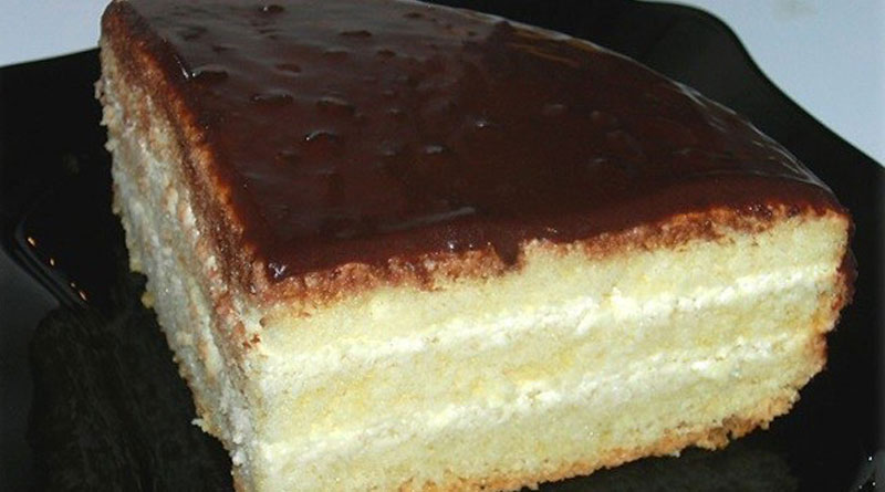 Этим кремом промазываем три бисквита, накладывая их, друг на друга. А шоколадной глазурью предлагаем украсить верх торта.
