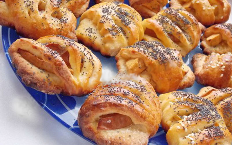 Выложите изделия на противень, смажьте смесью из молока и яичного желтка, посыпьте маком.