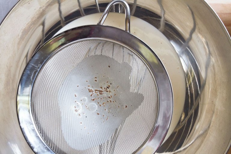 2. Берем ваниль и надрезаем ее вдоль. Счищаем ножом темную мякоть и перемешиваем с желтками и сахаром. Далее в смесь добавляем охлажденные сливки и соль. Процеживаем смесь через мелкое сито.