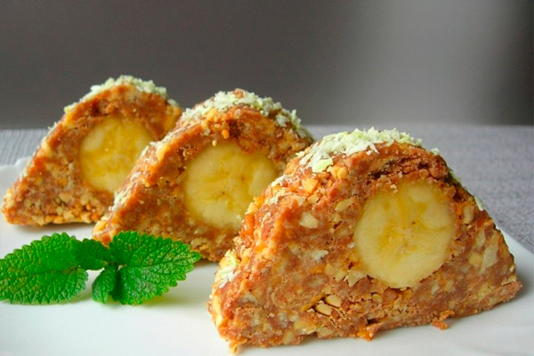 Помещаем в холодильник на 2 часа. Затем разворачиваем, посыпаем кокосовой стружкой и разрезаем на отдельные пирожные.