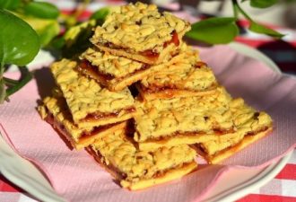 Меньший кусок теста натереть на крупной терке сверху начинки, распределяя равномерно.