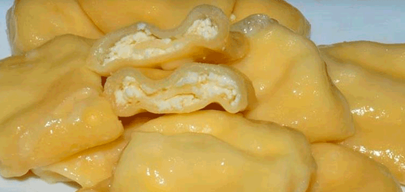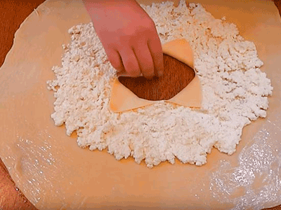 Теперь заверните тесто от центра к краям. По кругу стаканом делайте вареники.