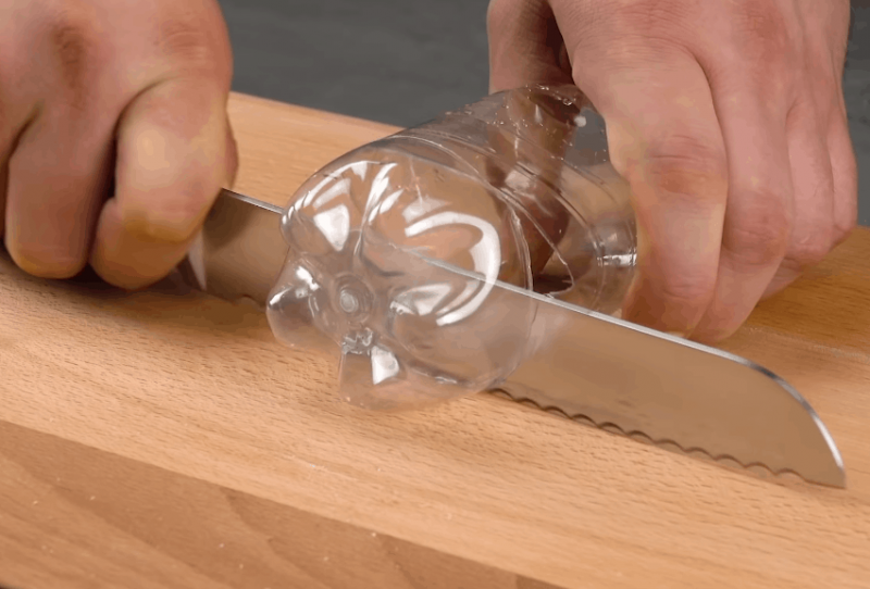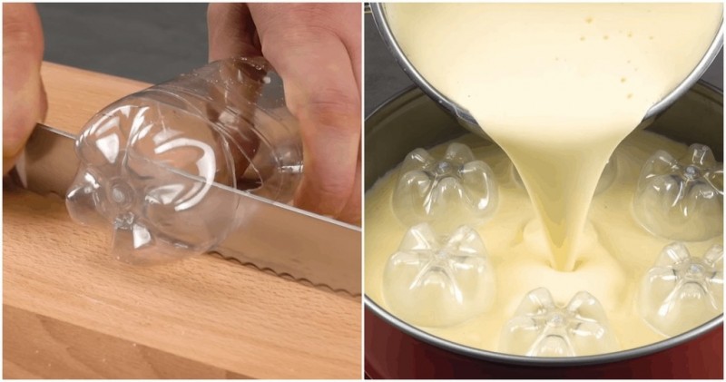 Обрезаем у бутылок дно, при необходимости подравниваем место обрезки. Ориентировочная высота получившихся плошек — 5 см.