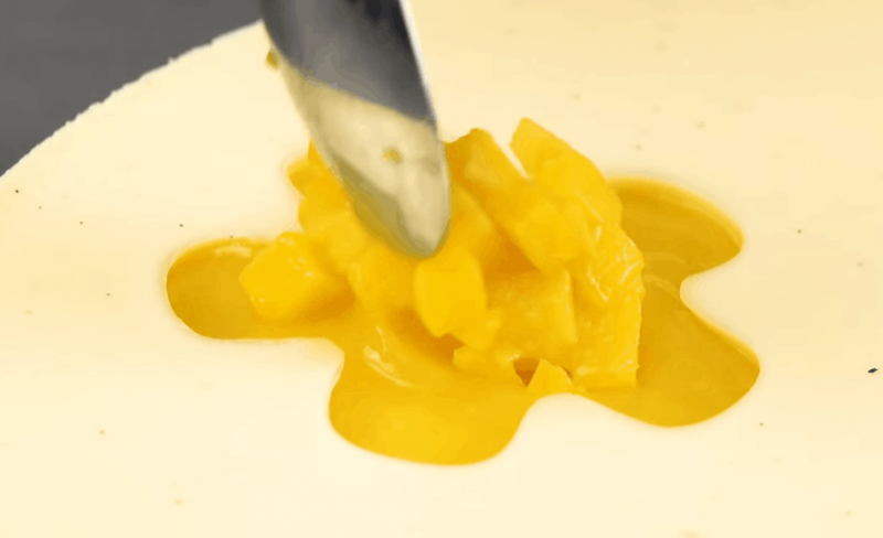 Теперь необходимо наполнить пустующее пространство фруктовым и ягодным пюре.