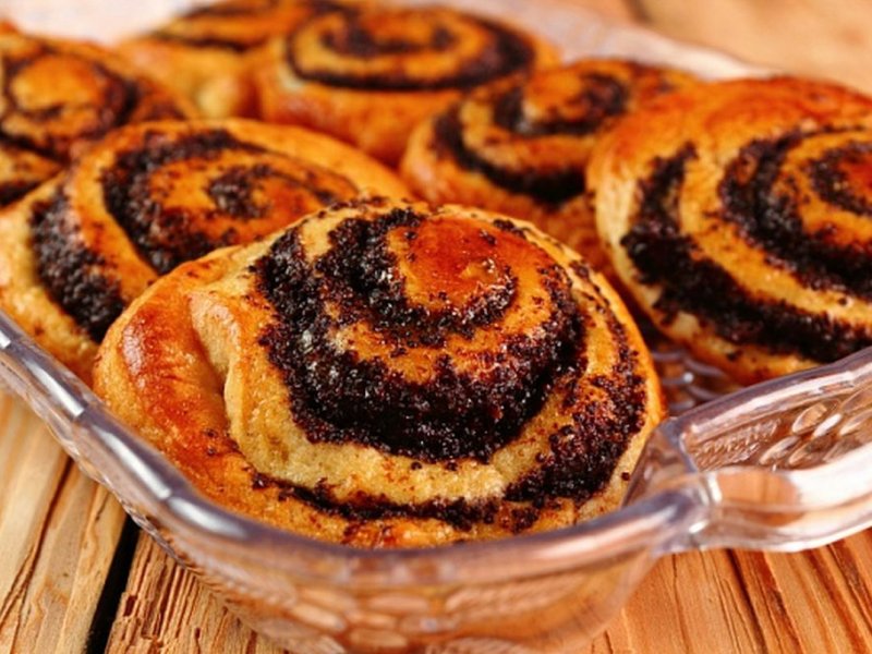 - Желток смешиваем с яйцом и получившейся смесью смазываем булочки. Присыпаем их сверху маком и ставим в духовку, разогретую до 180 градусов. Выпекаем в течение 15-18 минут, а потом достаем и даем немного остыть. Готовые булочки подаем к столу с чаем или какао.