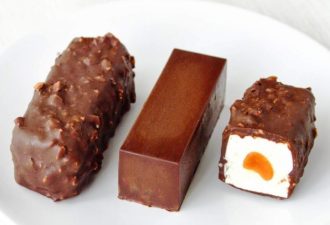 Шоколад растопить в сливках на маленьком огне и сразу же облить им шоколад.