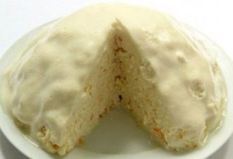 5. Мягкое и немного водянистое от пропитки печенье выложить в форму, сверху вылить 1/3 часть сырного крема. Поверх крема выложить следующий слой печенья, предварительно смоченного в кофе. Чередовать слои до заполнения всей формы. Последний слой — кремовый.