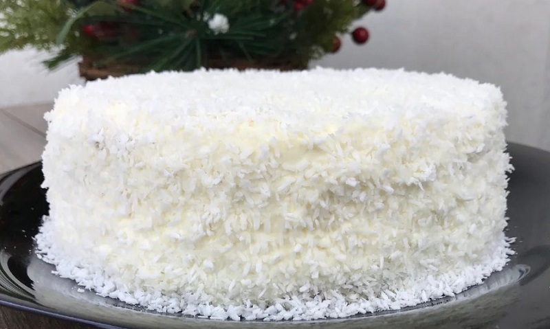 7. Украшаю кокосовой стружкой и отправляю торт в холодильник на ночь, чтобы он хорошо пропитался. Приятного всем аппетита!