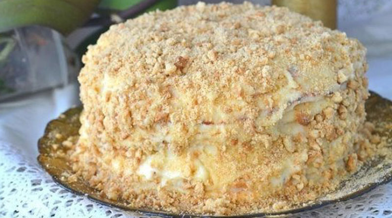 Обсыпаем получившейся крошкой торт со всех сторон. Даем ему время пропитаться.