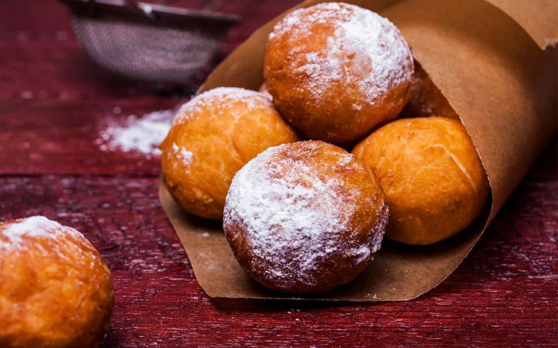 Подавать пончики горячими, выложив на блюдо и посыпав сахарной пудрой, смешанной с ванилином.