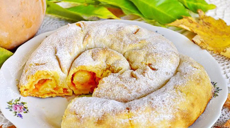 Выкладываем вертуту на противень, застеленный бумагой и запекаем при 180°С в течение 35-40 минут.