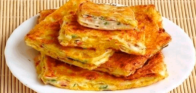 К яйцам добавить муку. Массу слегка взбить. Полуфабрикаты восточных гренок обильно обмакнуть в яичную массу и обжарить на масле с двух сторон до подрумянивания.